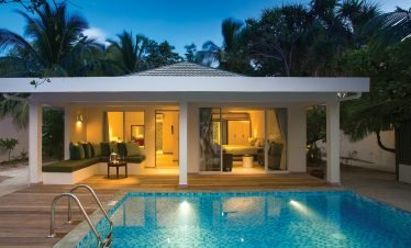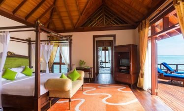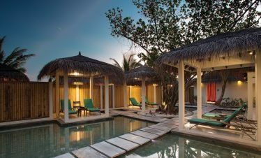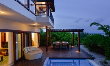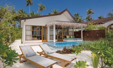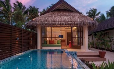 Luxury villas stand over turquoise waters, white sandy beaches lead to beautiful sea views, and traditional architecture meets modern flair; welcome to Olhuveli Beach &...