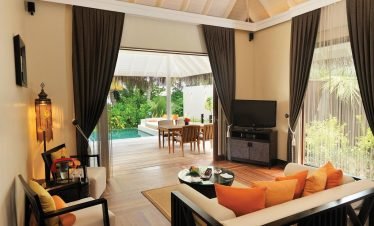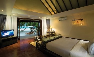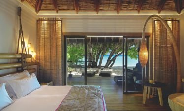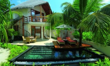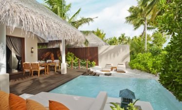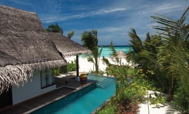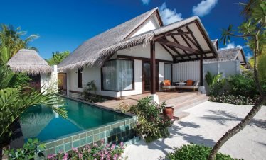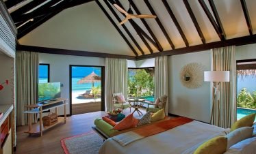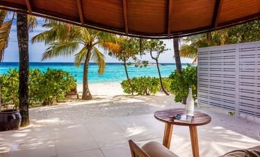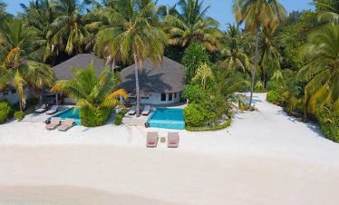 Stand-alone Beach villas spreading idyllically along a mesmeric two kilometer long turquoise lagoon, showcasing vast living spaces with accentuating Maldivian interiors; offers a hassle-free five...